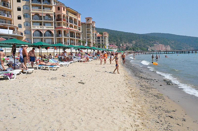 Тихий, уютный болгарский курорт встретит вас спокойным морем. Здесь практически никогда не бывает водорослей и медуз, дно пологое и покрыто песком. Протяженность центрального пляжа – 800 метров. Каждый день его чистят и разравнивают.